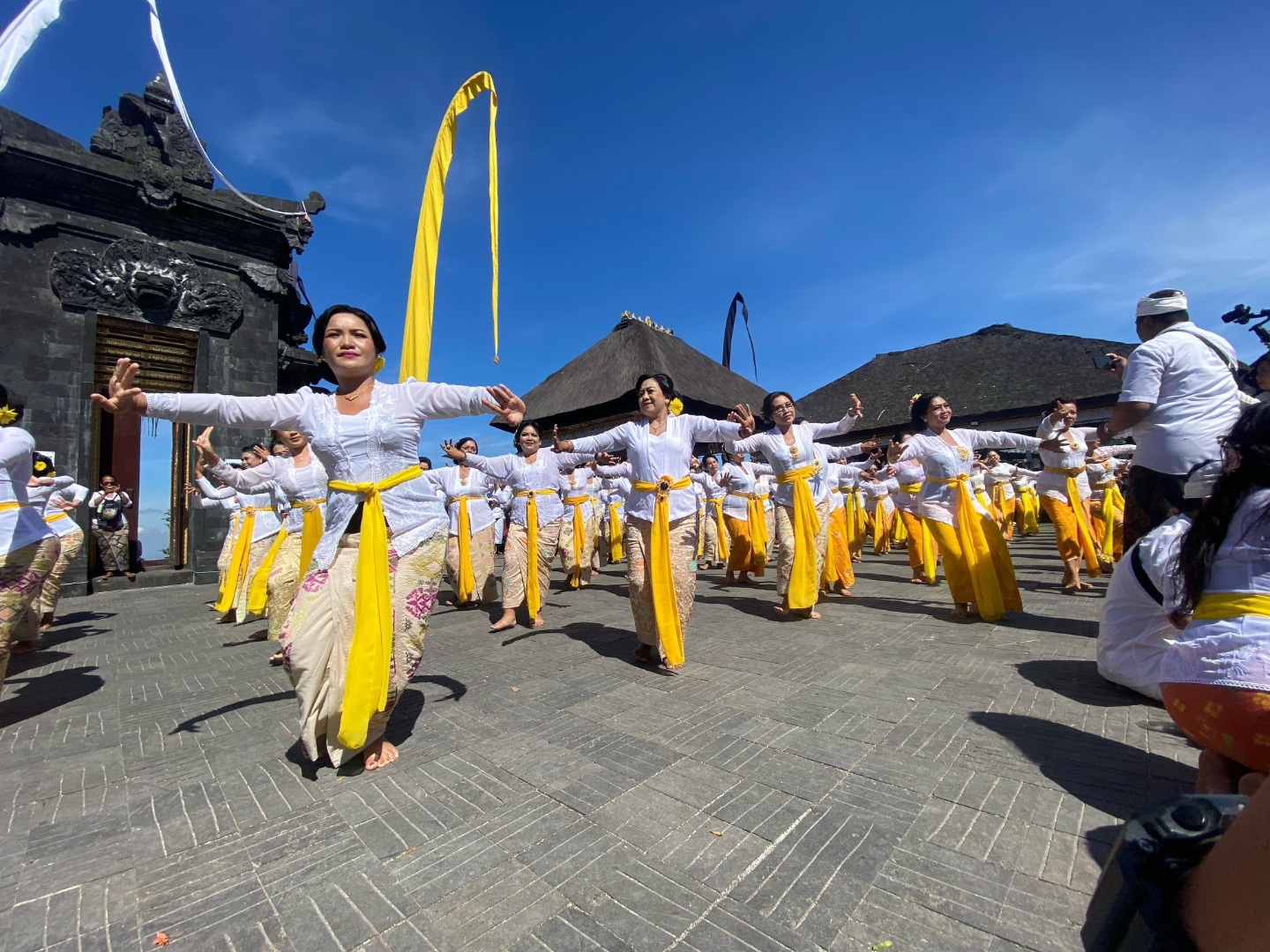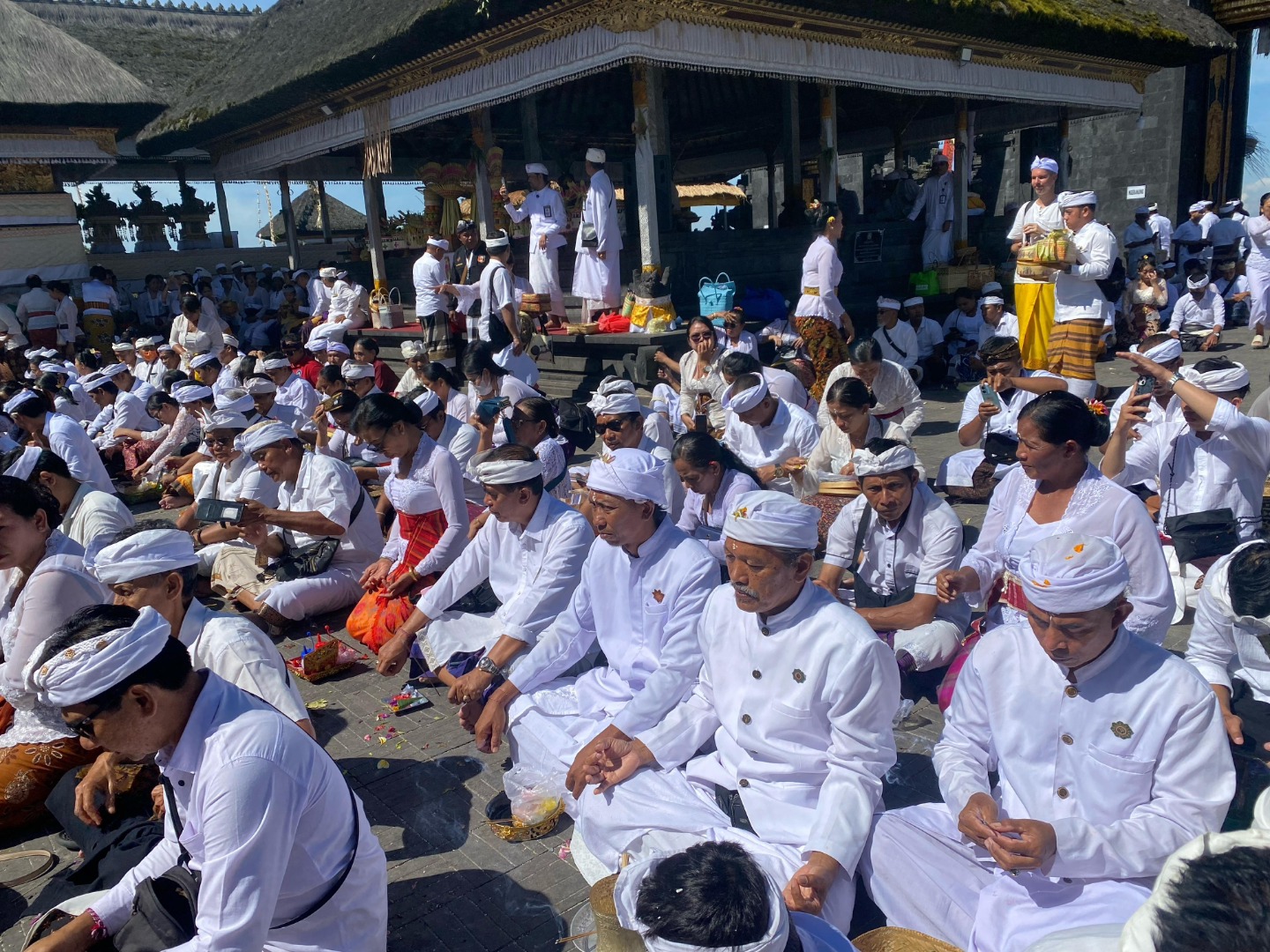 Jajaran Pemerintah Desa Dangin Puri Kangin melaksanakan Bhakti Penganyar serangkaian Karya Tawur Tabuh Gentuh dan Ida Bhatara Turun Kabeh di Pura Agung Besakih bertepatan dengan Buda Pon Wuku Sungsang, Rabu 16 April 2025.