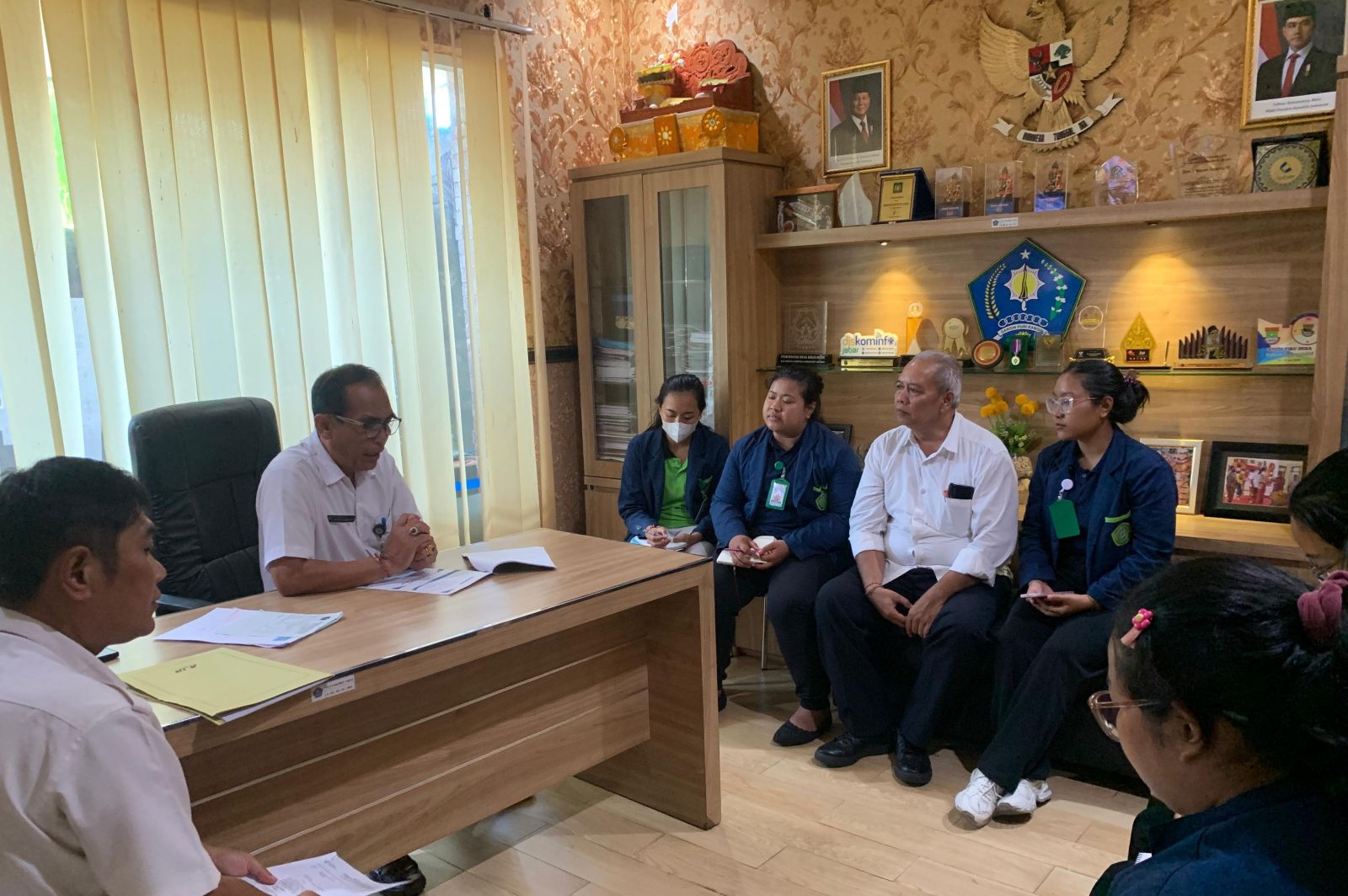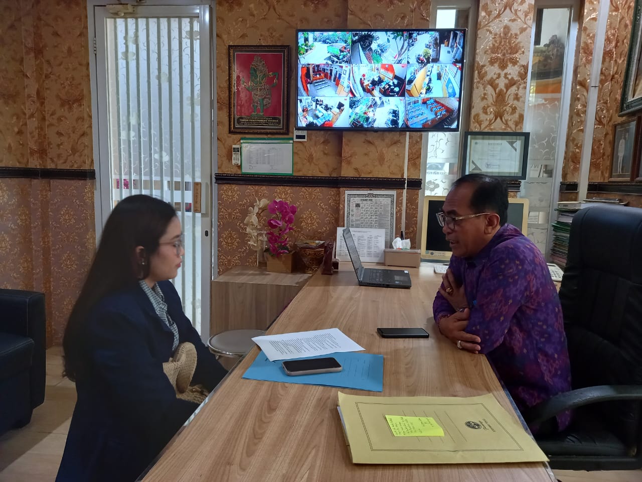 Pihak ke 3 sedang menanyakan informasi kewilayahan di Desa dan BUMDesa kepada Bapak Perbekel