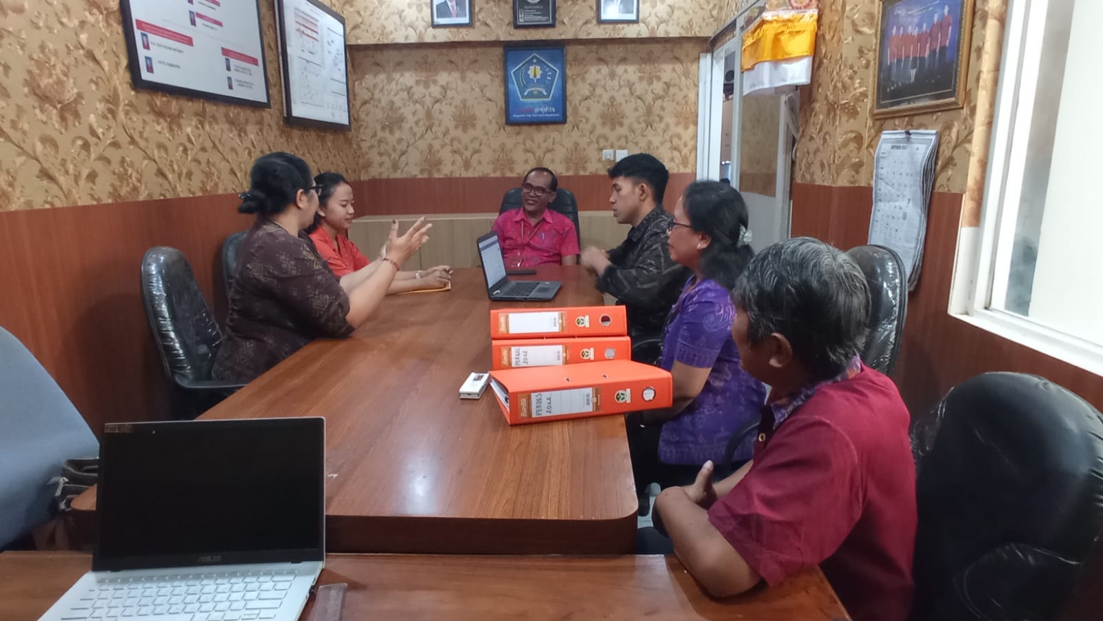 Tim PID bersama dengan PPS Desa Dangin Puri Kangin sedang memberikan informasi kepada perwakilan Bawaslu terkait kepemiluan di Desa Dangin Puri Kangi