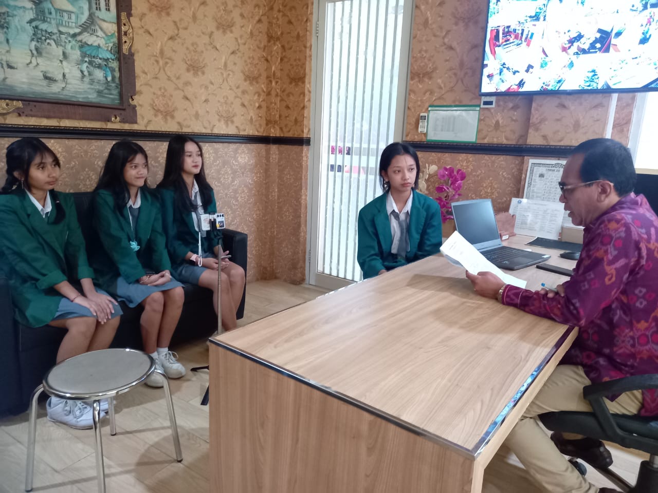 Bapak Perbekel menyampaikan informasi dan wawancara langsung bersama OSIS SLUA Saraswati Denpasar